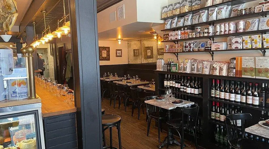 - Ambiance: Cozy, rustic, and market-style with shelves of Spanish goods.