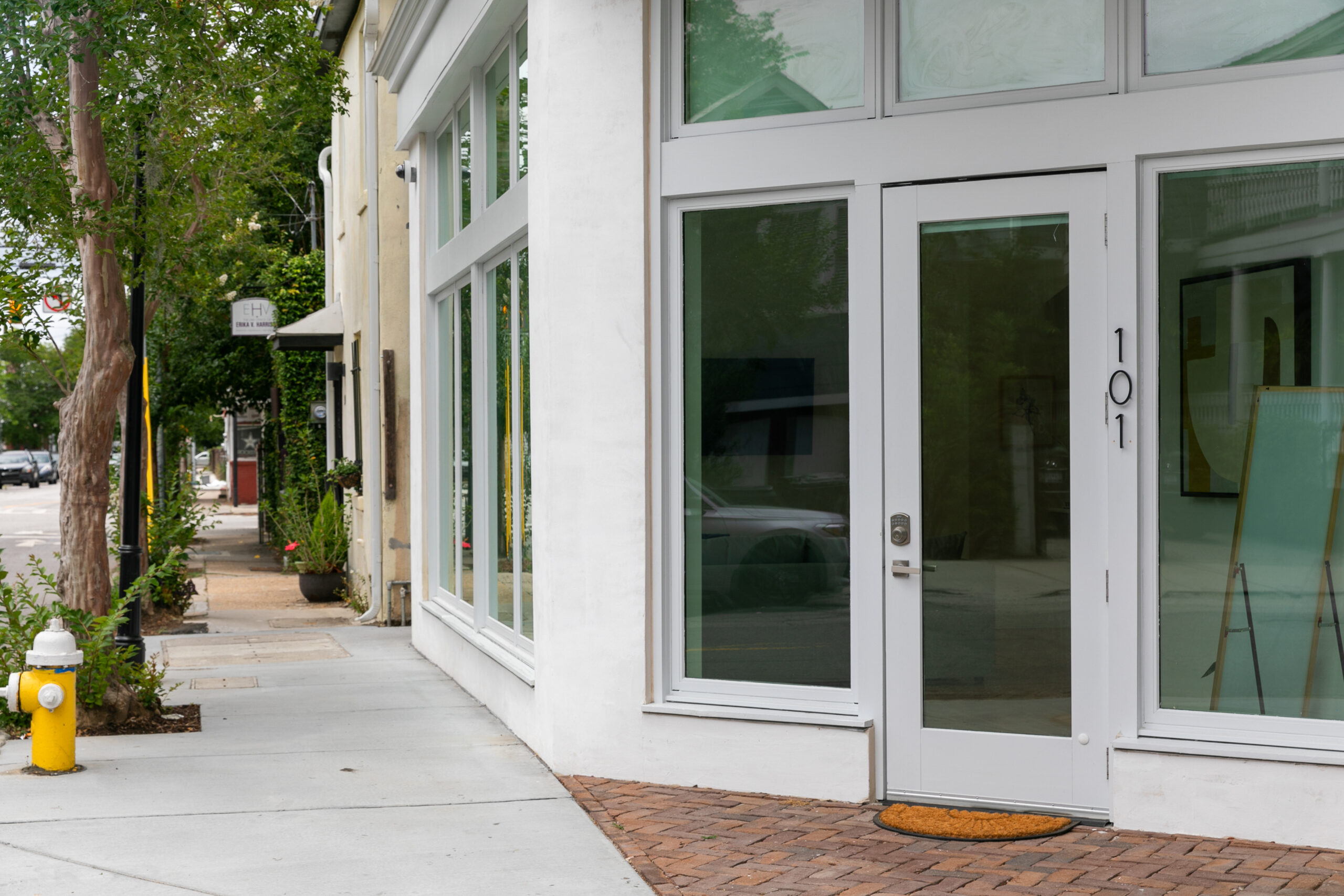 This unit is located on the ground floor at the front of the building. There is a privacy film on all of the windows that look out onto the street view.